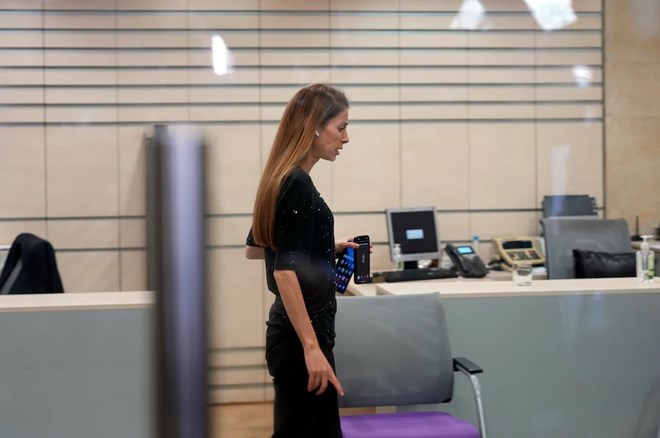 Beirut legislator Cynthia Zarazir speaks on the phone as she walks inside a Byblos Bank branch near the capital Beirut, demanding $8,500 from her savings to cover expenses for a surgery, in Antelias, Lebanon, Wednesday, Oct. 5, 2022. Cash-strapped Lebanon in recent weeks has witnessed a surge in depositors storming bank branches to forcefully withdraw their locked savings, as the country’s economy continues to spiral. On Tuesday, depositors stormed at least four banks, two of which were armed. (AP Photo/Bilal Hussein)