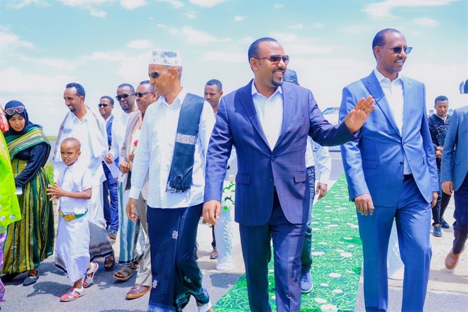 The Somali Region's President Mustafa Mohammed Omar 'Agjar' welcomed Abiy Ahmed and Ethiopian Foreign Minister Demeke Mekonnen to Garaad Wiil-Waal Airport in Jigjiga. Mekonnen is also the Vice-President of the Prosperity Party.