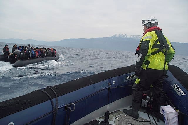 Refugees crossing the Mediterranean sea on a boat heading from the Turkish coast to the northeastern Greek island of Lesbos on January 29, 2016. Credit: Mstyslav Chernov/Unframe.CC–BY-SA-4.0 / Wikimedia Commons