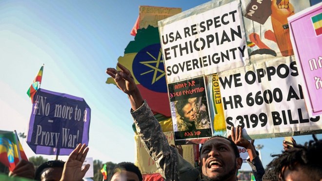 Ethiopians protest against what they say is interference by outsiders in the country's internal affairs and against the Tigray People's Liberation Front (TPLF), the party of Tigray's fugitive leaders, at a rally organized by the city administration in the ca...