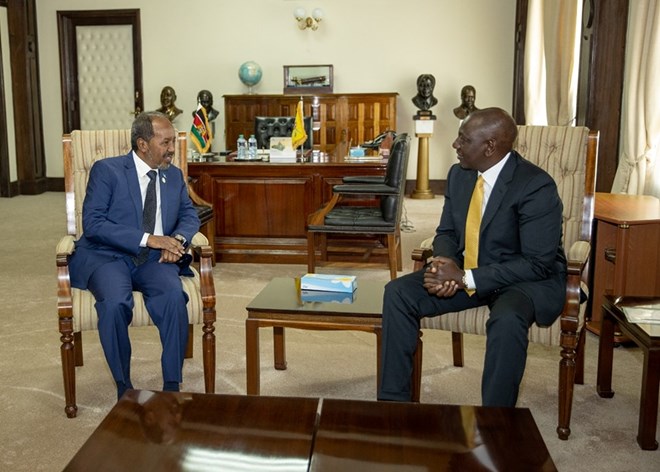 Mogadishu (HOL) - Somali President Hassan Sheikh Mohamud, and his Kenyan counterpart, William Samoei Ruto, held a meeting at the State House in Nairobi on Wednesday.