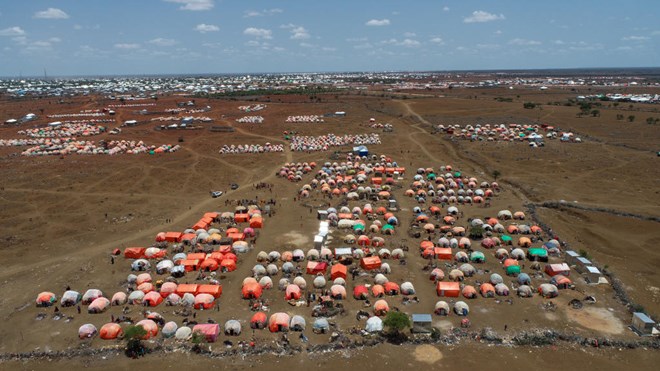 An aerial view of Qaydar-adde camp in Baidoa, one of the main destinations of people displaced by the severe drought in Somalia. Photo: Abdulkadir Mohamed/NRC