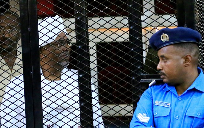 Sudan's former president Omar Hassan al-Bashir sits inside a cage during the hearing of the verdict that convicted him of corruption charges in a court in Khartoum, Sudan, December 14, 2019. REUTERS/Mohamed Nureldin Abdallah