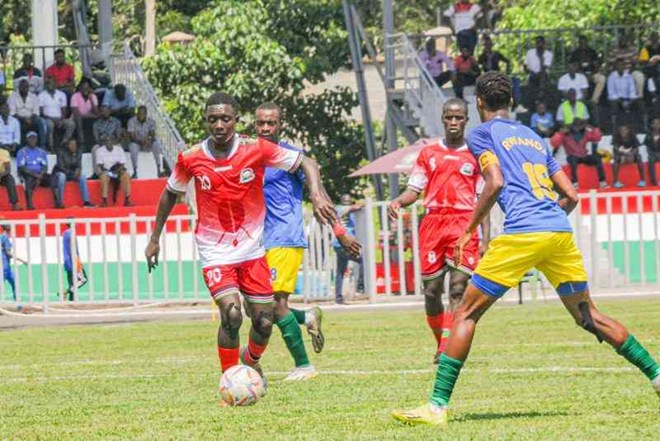 Kenya's Aldrine Kibet in action against Rwanda at Jomo Kenyatta Stadium in Kisumu. [FKF]