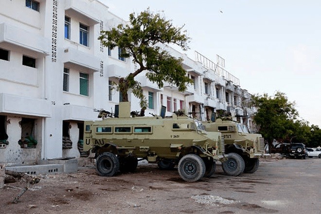 African Union Casspir armored vehicles parked in Villa Somalia,Mogadishu. March 2011 (Photo by jason florio/Corbis via Getty Images)