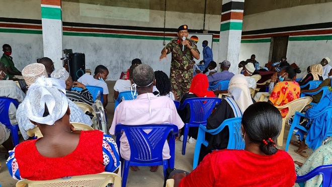 Kenya Defence Forces officers take residents of Hindi in Lamu county through the Security Sector Counter Violent Extremism (SSCVE) programme. Image: HANDOUT