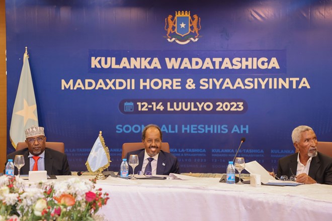 The presidency said the meeting bringing together senior government officials including former prime ministers, presidents, and speakers will enable President Mohamud to share achievements, challenges, and future plans of the government.