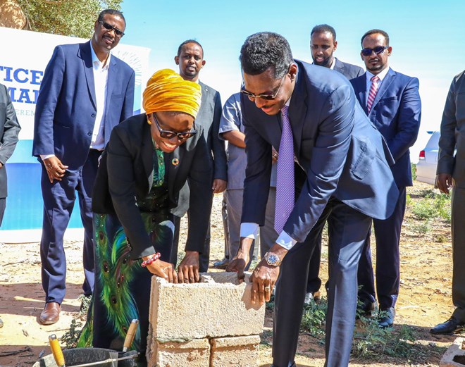 Dhusamareb (HOL) - The Deputy Special Representative of the UN Secretary-General for Somalia, Anita Kiki Gbeho, along with Galmudug's President Ahmed Abdi Karie QoorQoor, took part in the groundbreaking ceremony for the new UN office in the administrative capital of Galmudug state.