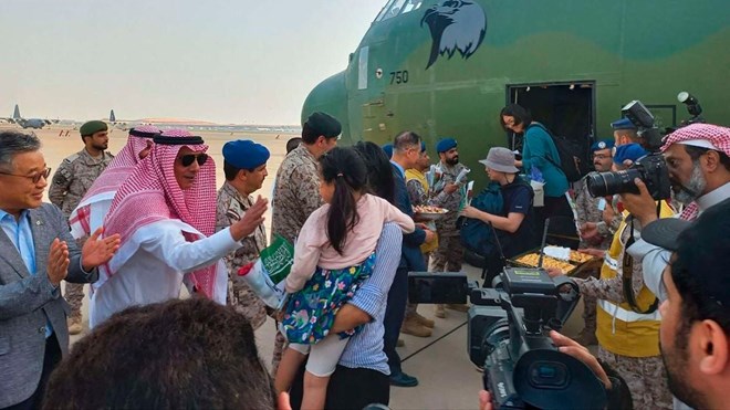 South Korean nationals on April 24, 2023 arrive by military aircraft at Jeddah airport in Saudi Arabia from Port Sudan. PHOTO | SOUTH KOREAN PRESIDENTIAL PALACE | AFP