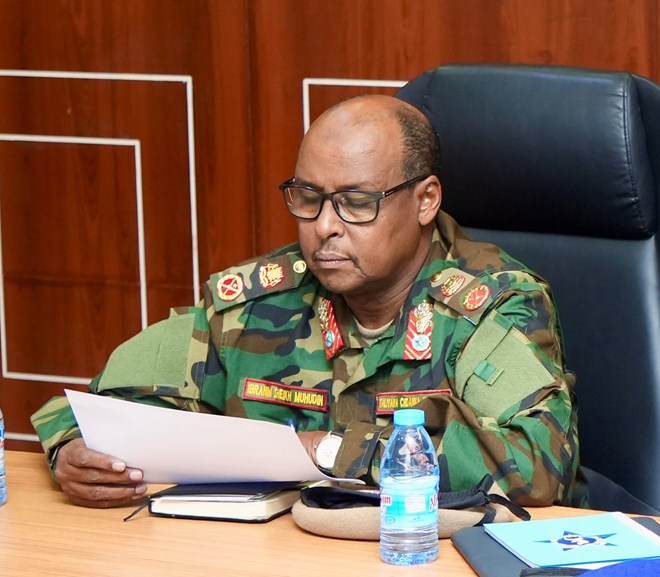 He praised government soldiers who dislodged the militants from vast areas since the offensive was launched last year.The meeting was attended by the Minister of Defense, Abdulkadir Mohamed Noor, the Commander of the Armed Forces, Major General Ibrahim Sheikh Muhyaidin, the Commander of the Somali Police Force, Major General Sulub Ahmed Firin, and other commanders.