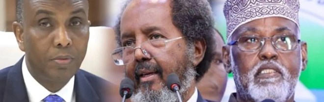 Somalia's Federal Leaders in Focus (from right to left): Prime Minister Hamza Abdi Barre, President Hassan Sheikh Mohamud, and Jubbaland President Ahmed Madobe