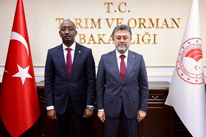 Turkey's Minister of Agriculture and Forestry, İbrahim Yumaklı, and Somalia's Minister of Fisheries and Blue Economy, Ahmed Hassan Aden, meet in Ankara to discuss a new bilateral agreement on sustainable fisheries management. (CREDIT: Anadolu Agency)