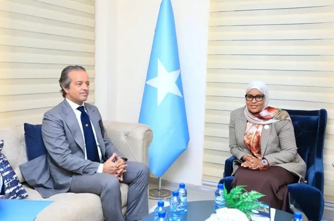 The Ambassador of Italy in Mogadishu Pier Mario Daccò Coppi was received today by the Minister of Transport of the Federal Republic of Somalia, Mrs. Fardowsa Osman Egal.