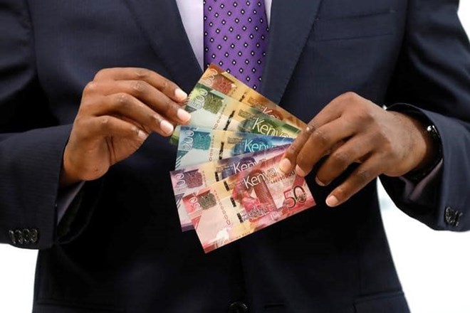 Kenya Central Bank Governor Patrick Njoroge displays Kenyan shilling bank notes during a news conference at the Central Bank in Nairobi, Kenya, June 3, 2019. REUTERS/Baz Ratner