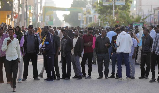People queue to cast their votes during the 2024 Somaliland presidential election at a polling station in Hargeisa, Somaliland, Nov. 13, 2024.