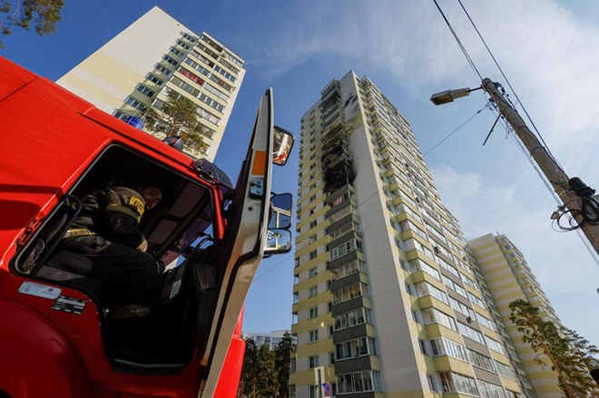 The drone attacks on Russia damaged at high-rise apartment buildings in the Ramenskoye district of the Moscow region, setting flats on fire, residents told Reuters.