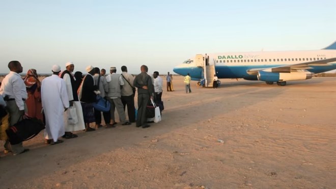 FILE - Passengers wait to board a Daalo Airlines flight at Berbera Airport in Somaliland, 2013. © AP