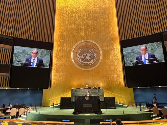 Egypt's Foreign Minister Badr Abdelatty, addressing the General Debate of the 79th session of the United Nations General Assembly on Saturday 29 September 2024