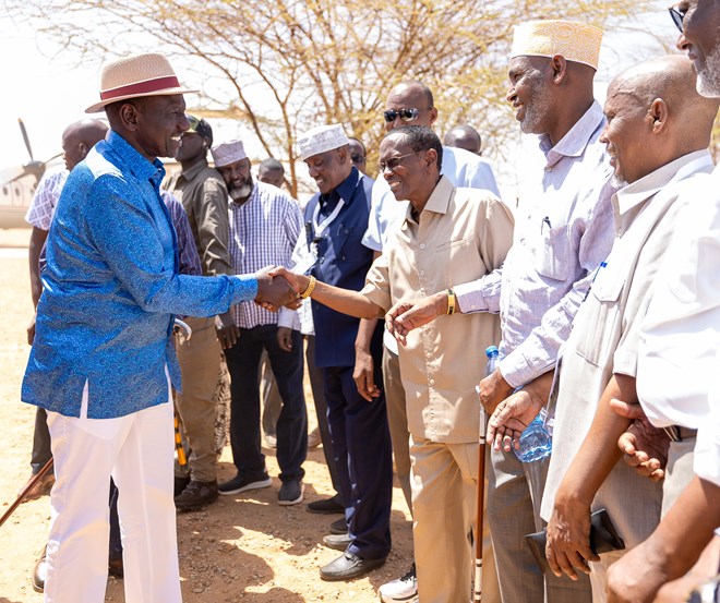 Ruto is accompanied by his deputy Kithure Kindiki, Governor Mohamed Khalif, Cabinet Secretaries Aden Duale (Environment), Eric Mugaa (Water) and a host of elected leaders from the region.