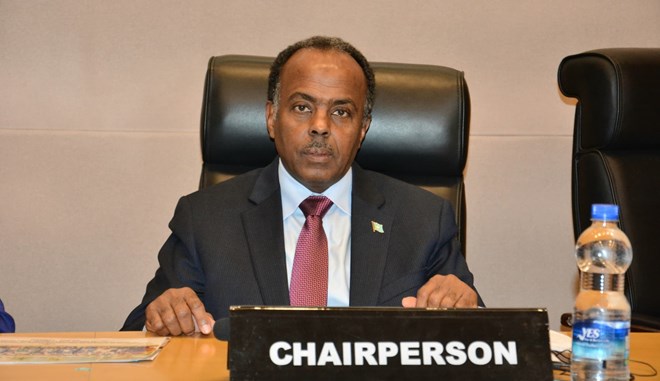 Somali State Minister for Foreign Affairs, Ali Mohamed Omar, presides over a session at the African Union Executive Council meeting in Addis Ababa. As chairperson, Omar played a key role in the selection process for AU leadership positions