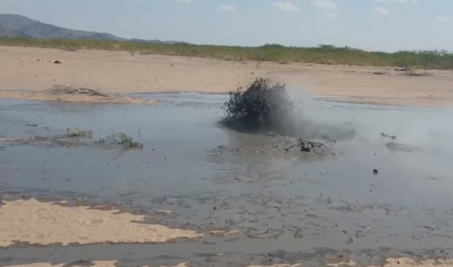 In this image taken from video, mud bubbles up near volcanic activity in the Sagento Kebele Village, Afar region, Ethiopia, on Jan. 4, 2025.