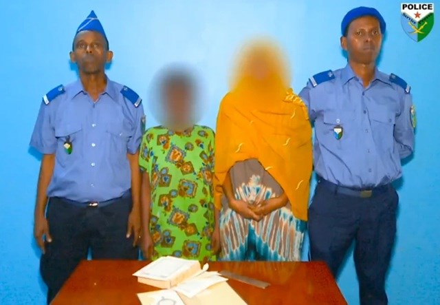 Djibouti police officers stand beside two detained women accused of desecrating the Quran, following their arrest in Gabood district. Authorities say the incident, captured in a viral video, has sparked widespread outrage in the Muslim-majority nation. (Photo: Djibouti Police)