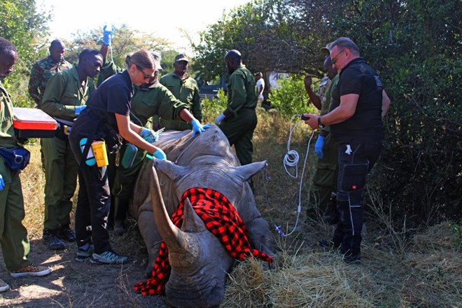 Kenya Wildlife Service (KWS) officers and other conservationists take part in a joint operation to conserve White Rhino at Ol Pejeta Conservancy in Laikipia County, Kenya, Feb. 26, 2025. (Photo by Charles Onyango/Xinhua)