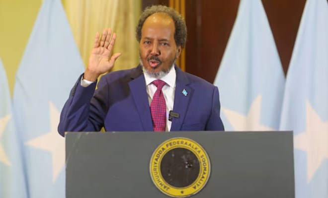Somalia's President Hassan Sheikh Mohamud addresses the media inside his office in Mogadishu, Somalia February 21, 2024. REUTERS/Feisal Omar/File Photo Purchase Licensing Rights