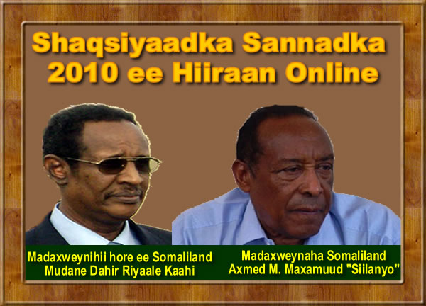 Ayada oo jiraan dad badan oo Soomaali ah oo qayb weyn ka qaatay u gargaaridda dadweynaha dhibaateysan, ayeey wariyaasha iyo tafatirayaasha Hiiraan Online waxay u doorteen Shaqsiyaadka Sannadka 2010 Madaxweynaha Somaliland Axmed Maxamed Maxamuud Siilaanyo iyo madaxweynihii hore ee Somaliland Dahir Riyale Kahin sababaha soo socda awgood:
