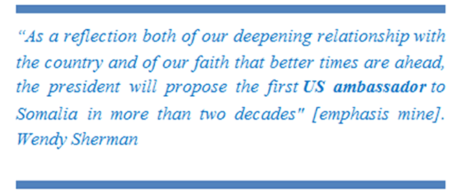 On June 3, Wendy Sherman, the Under Secretary of State for Political Affairs, presented her country’s shift of foreign policy in Somalia away from the mere binary of terrorism-counterterrorism strategy. Wendy Sherman reiterated that seven out of the 10 fastest growing economies in the world are in Africa.