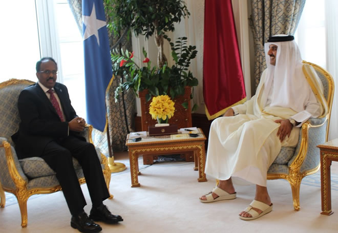 President Mohamed Abdullahi Farmaajo with H.H. Sheikh Tamim Bin Hamad Al Thani in Doha - May 25, 2017 (Photo Villa Somalia)