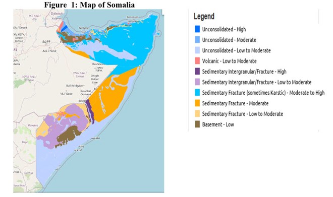 The geology of Somalia primarily consists of Mesozoic to recent sediments make up most of the exposed rocks of Somalia. Two isolated uplifted Neoproterozoic and early Cambrian complexes occur to the west of Mogadishu in the Bur area and in northern Somalia paralleling the Gulf of Aden (Figure 1).