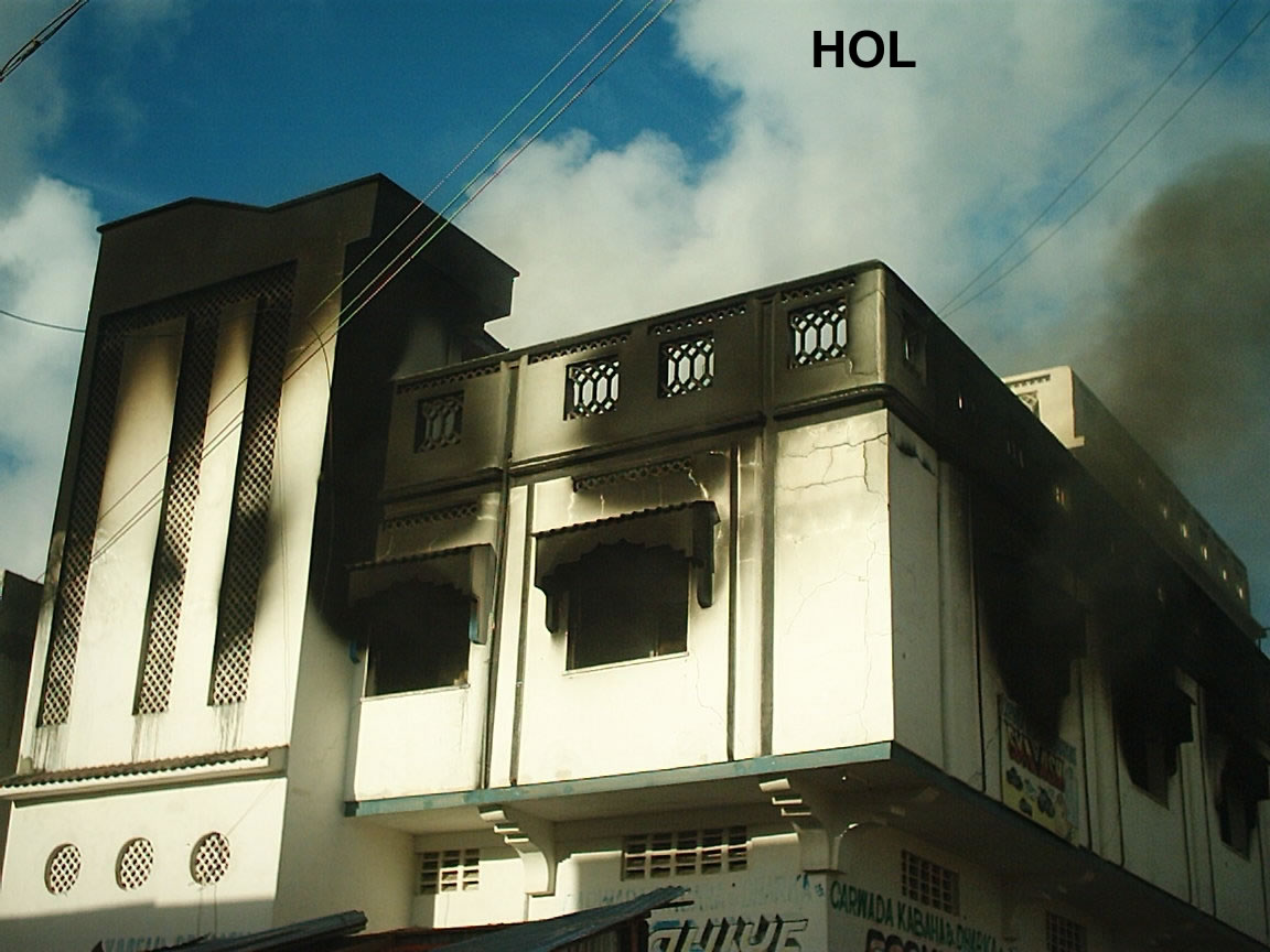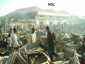 Saakay markii uu waagu baryay ayaan ku kalahay halkii xalay dabku ka kacay, waxaana si toos ah u abaaray halkii dabku ka bilowday, markii aan goobta imidna qacdii ugu horeysay waxay indhaheygu qabteen goobtii ciriiriga ahayd ee lagu iibin jiray dharka jumlada ah oo aad moodeyso in laga diyaarin rabo garoon lagu ciyaaro K/cagta, yacni sida ay dhamaanba dhulka ula mid noqdeen sandaqadihii halkaasi ku yiilay oo uu dhar ka buuxay, waxaana goobta ka muuqda haraagii lamayeeri ay ka sameysnaayeen sandaqadahaas oo isaga qudhiisa isku duubmay, iyadoo weliba meelaha qaarkood uu qiiq ka baxayay.