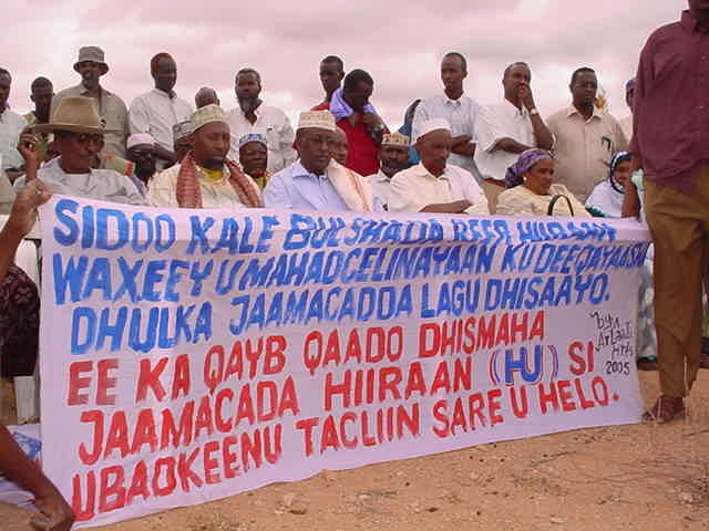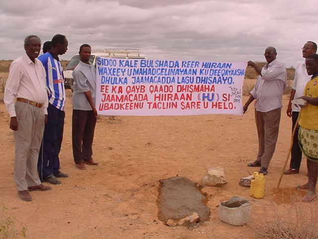 After series of focused meetings that was facilitated by the management of the B/Weyne library and Abdulqadir Khalif Diriye who is a member of the Board of Directors of the Hiiraan University Association, the historic ceremony took place on August 10, 2005 at a land with the size of 150 X 160 M that has been donated by, among others, Dr. Ibrahim Ali Saney, Engineer Ahmed A/lle Gure, Omar Mohamoud Afrah “Teelow”, and Nuradin Hassan Gure.