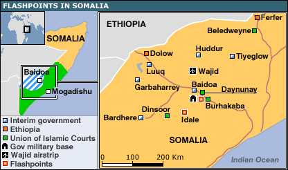 Arbaco, December 20, 2006(HOL): Dagaalkan oo la isugu adeegsaday hubka noocyadiisa kala duwan ayaa waxaa uu ka dhacay nawaaxiga Deegaanka Deynuunaay oo u dhaxeeya Magaalooyinka Buur-Hakaba iyo Baydhabo, iyadoo labada dhinac ay isku ridayeen madaaafiic laga maqlayay labadaas magaalo oo 60km isu jira.