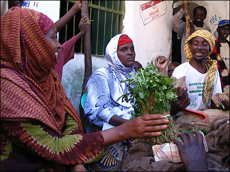 | Maryann Ali, left, a khat dealer in Wajid, was a teacher before the Somali government fell in 1991 and the schools were closed. Emily Wax |