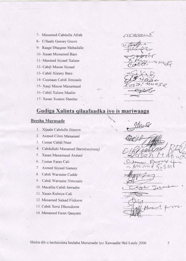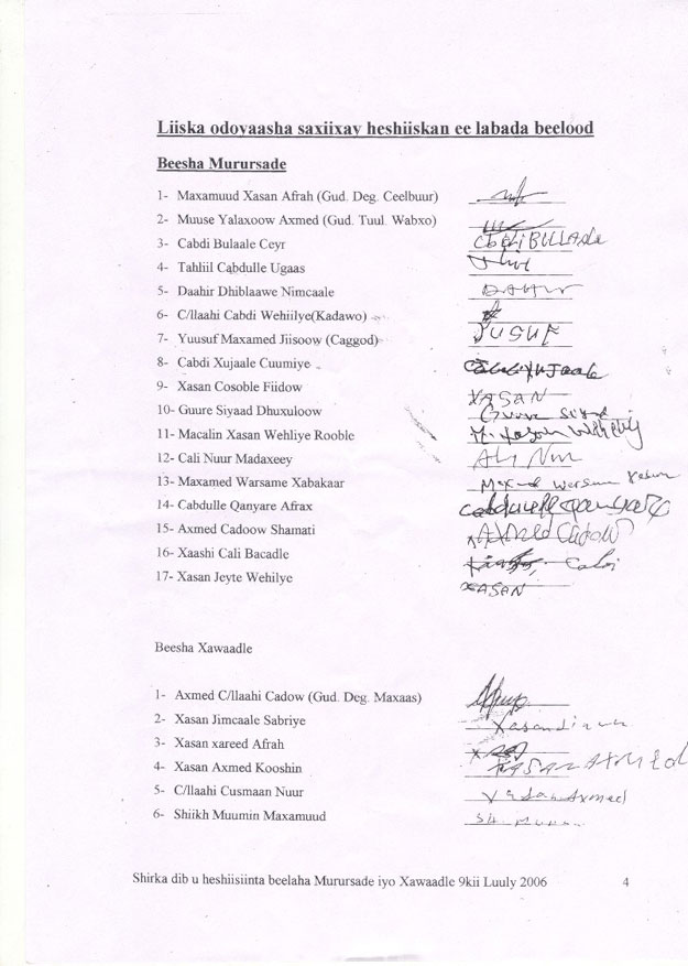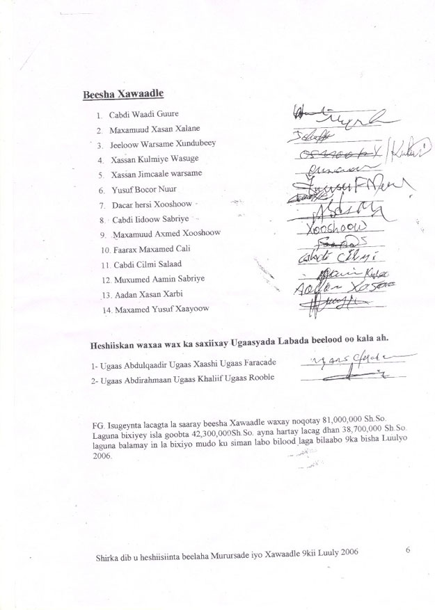 in dhamaan wixii la isku heystay, isla markaana ka horeeyay heshiiskii Wabxo ee dhacay 13-kii Maarso 2006 god la shubo, isla markaana la iska iloobo.