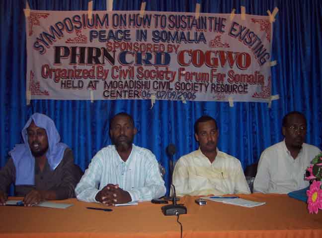 Arbaco, September 06, 2006(HOL): Waxaa saakay lagu qabtay Xarunta Macluumaadka Bulshada Rayidka Soomaaliyeed ee Muqdisho ku taala shir looga doodayay sida loo joogteyn karo nabadda ka jirta Soomaaliya, gaar ahaan tan laga hirgeliyay Caasimadda Muqdisho.