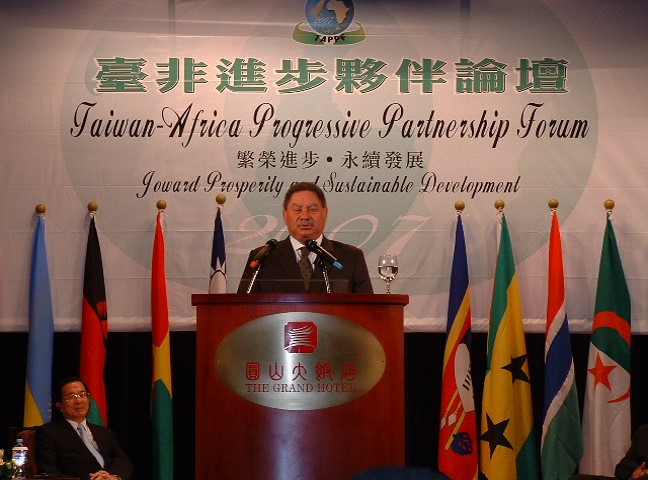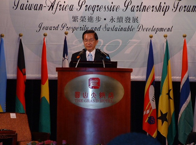 Waxaa shirkaas Furay Madaxwaynaha Wadanka Taiwaan Mr. ChenShui-bian oo halkaas khudbad aad loogu riyaaqay  ka jeediyay isagoo sheegay  in Taiwaan ay diyaar u tahay in ay wax badan la qabato Qaardda Afrika oo ay dhibaatooyin fara badan haystaan. Waxaana uu carrabka ku dhuftay  in Taiwaan ay maanta fursadaan iskaashiga ah ay u furayso Qaaradda Afrika  ay haboontahay in loo arko mid ay biniaadanimadu farayso balse aan dano gaara ah laga lahayn, waayo buu yiri markii Taiwan Dhulgariirkii cuslaa ku dhacay 2001 waxaa inoo soo gurmaday Caalamka - 270 Urur oo samafal ah ayaa hawlo samatabixina inoo fidiyay. “Annagana maanta markaan ka baxaynay dhibkii oo dhaqaalahayna uu aad iyo aad u kobcay kuma sii fiirsan karno in dunida dhibaato ay kusii jiraan dadka ku nool , taasina ma aha inaan saacdinaynee waa wajib caalami ah" ayuuna yiri Madaxweynaha Taiwan.