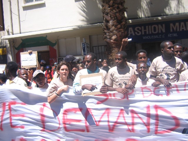 Sabti, February 09, 2008(HOL): Banaanbax ballaaran oo looga soo horjeeday tacadiga ay ciidamada booliska ee dalka south Africa ku hayaan dadka qaxootiga ah ee ku nool wadankaas ayaa 7dii bishan ka dhacay magaalda Cape Town ee dalka South Africa.