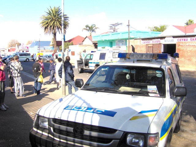 Jimco, May 23, 2008(HOL): Rabshado ayaa ka bilowday Xafadda Soomaalida ee Mayfair ee magaalada Johannesburg kadib markii nin Police ah uu isku dayay in uu xiro yar ka mid ah Dhalinyarada Xaafada kadibna ay qeylo iyo dhagaxtuur uga hortageen Dhalinyaradii halkaasi joogtay.