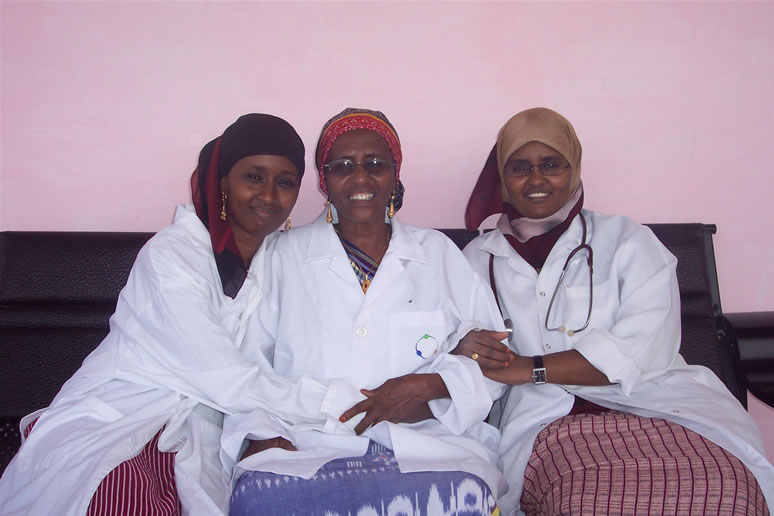 Dr. Hawa Abdi Dhiblawe with her two young daughters, Dr. Amina Mohamed Abdi, and