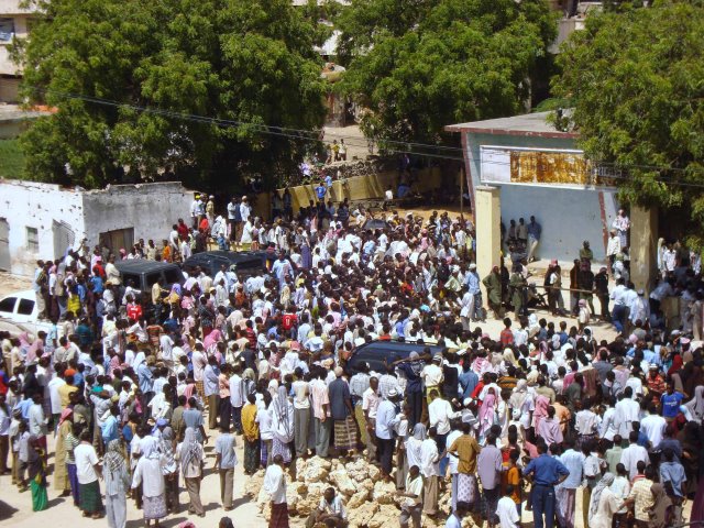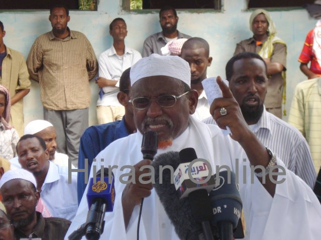 Jimco, April 24, 2009(HOL): Shiikh Xasan Daahir Aweys oo shalay soo gaaray magaalada Muqdisho ee Caasimadda Dalka Soomaaliya kadib labo sanadood oo uu dibadda uga maqnaa ayaa wuxuu maanta meel fagaare ah kala hadlay boqolaal ruux oo ka mid ah dadka ku nool Magaalada Muqdisho.