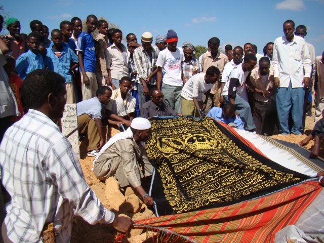Meydka marxuumka oo laga qaaday Isbitaalka Madiina ayaa markii lagu aasay Qabuuraha km13 waxaa qabriga dushiisa ka hadalay Abwaan Xasan Jaceyl oo ka tirsan howl-wadeennada Idaacadda Horn Afrik, isla markaana ay marxuumka muddo dheer soo wada shaqeynayeen.