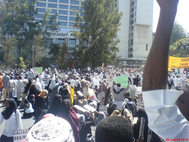 Dhinaca kale, dadweynahan ayaa markii dambe socod ku soo maray qaar ka mid ah waddooyinka waaweyn ee nairobi iyagoo ku dhawaaqayay erayo ay ka mid yihiin Israa'iil ha dhacdo, Falastiin ha xorowdo, Bush iyo Olmert ha dhacaan.