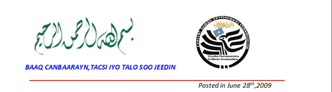 Baaqaan,waxaa si wadajir ah usoo saaray Ururada hoos ku qoran.