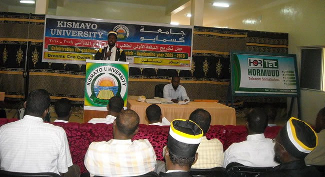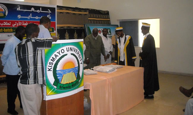 Khamiis, Agoosto 05, 2010 (HOL) - Xafladan oo ahayd mid aad loo soo agaasimay islamarkaasina ka dhacday xarunta Jaamacadda Kismaayo ayaa waxa shahaadooyin lagu gudoonsiinayay dufcadii ugu hroeeysay ee ka qalin jabiso jaamacadda Kismayo University.