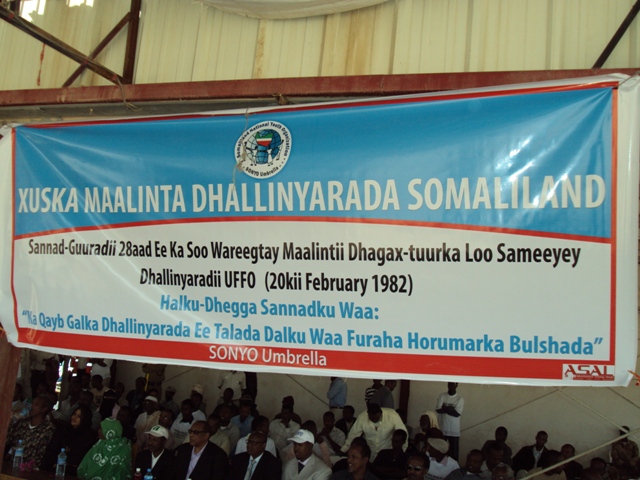 Axad, 21 February 2010 (HOL)- Munaasibad lagu xusayay 28 guurada ka soo wareegtay Xuska maalintii dhagax-tuurka Dhalinyaradii UFO ee 20 February sanadkii 1982-kii, ayaa lagu qabtay Beerta Xorriyadda ee magaalada Hargeysa.