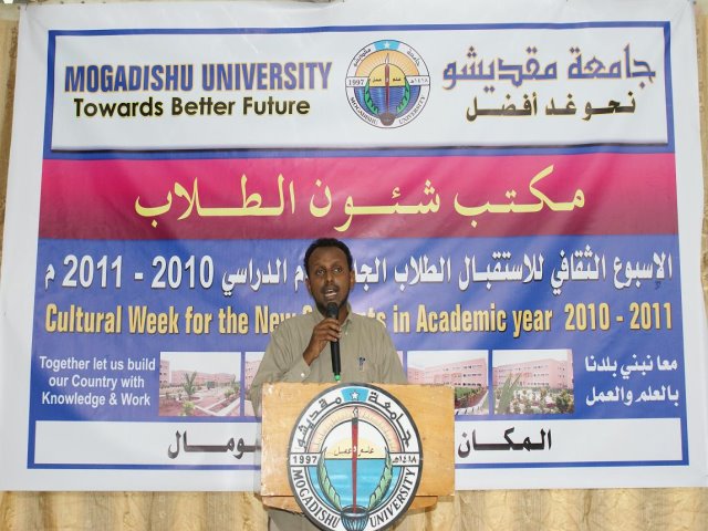 Arbaco, September 01, 2010 (HOL) − Waxaa maalintii shalay oo ay Taariikhdu ahayd 31/08/2010 si rasmi ah uga furmay Jaamacadda Muqdisho todobaadka dhaqanka ee jaamacada Muqdisho oo lagu soo dhaweynayo ardayda cusub ee sannad wax-barashadeedka 2010-2011 ka.
