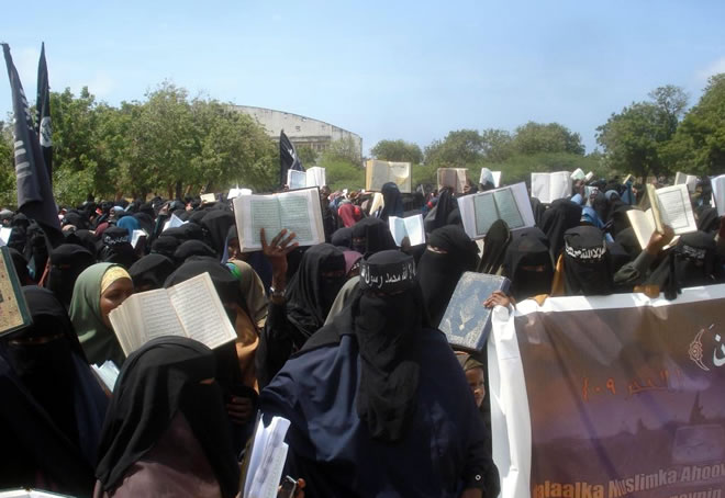 Mudaaharaadyadii ugu badnaa oo rag, dumar iyo caruur sitay Kitaabka Qu'aanka ay ka qaybgaleen ayaa ka dhacay Muqdisho, waxaana hadal ka jeediyay Afhayeenka Xarrakatul Shabaab Sheekh Cali Maxmauud Raage (Sheekh Cali Dheere).